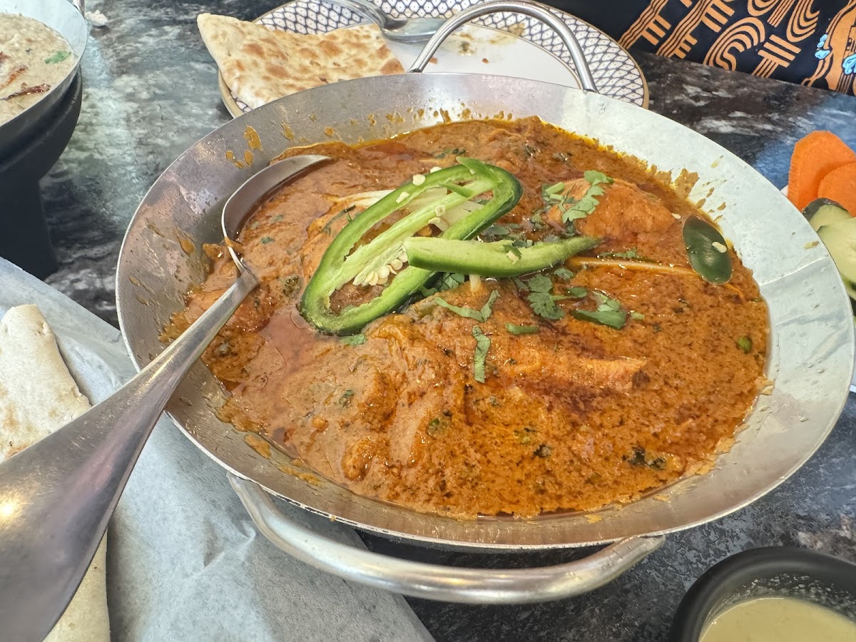 I once did a mini taste test here with a friend who reviews South Asian food for a local blog. We ordered chicken tikka, beef kabab, and goat karahi and scored them blindly. The goat karahi came out on top for both of us, mainly because of the tenderness. USDA cooking guidelines suggest goat benefits from moist heat and longer cooking, and it seems the kitchen respects that, letting it simmer until it falls apart without turning mushy.
